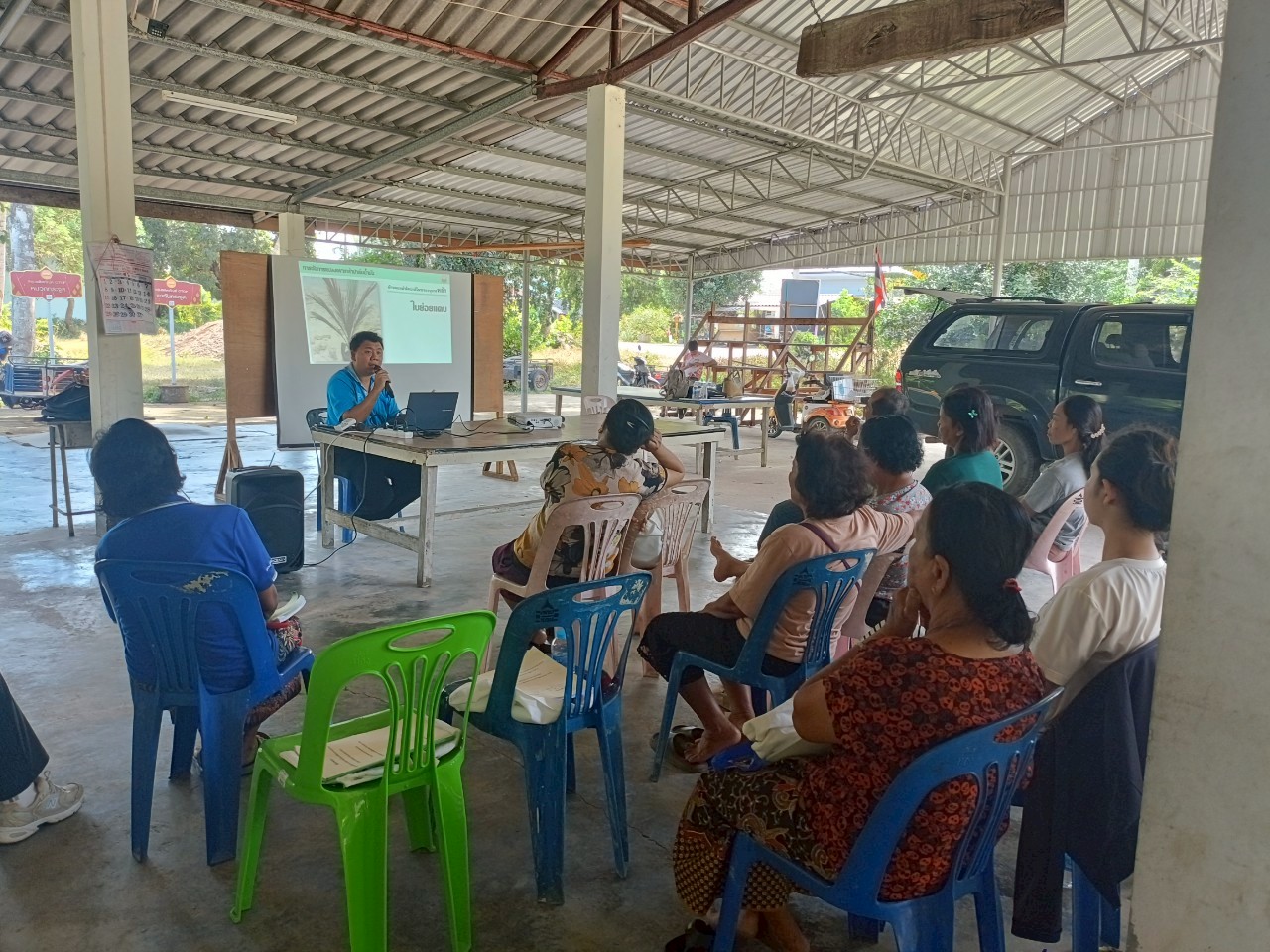กิจกรรมเพิ่มประสิทธิภาพการผลิตปาล์มน้ำมันอย่างยั่งยืนตามมาตรฐานสากล ภายใต้กิจกรรมย่อยด้านการส่งเสริมกลุ่มเกษตรกรให้สามารถผลิตปาล์มน้ำมันได้อย่างยั่งยืนตามมาตรฐานสากล โดยมีเป้าหมายในการยกระดับกลุ่มเกษตรกรเข้าสู่มาตรฐาน RSPO จัดการอบรมหลักสูตร “การเพิ่มประสิทธิภาพการผลิตปาล์มน้ำมันอย่างยั่งยืนตามมาตรฐานสากล” ครั้งที่ 1 ณ แปลงใหญ่ปาล์มน้ำมัน หมู่ที่ 7 ตำบลชัยบุรี อำเภอเมืองพัทลุง จังหวัดพัทลุง